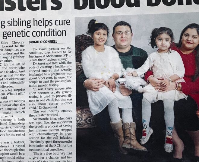 I had the most humbling experience of my medical career having transferred the embryo and then catching baby Saira, collecting her cord blood and preparing it for the team at the Royal Children’s Hospital to provide Siya with her much needed bone marrow transplant.